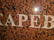 На новых плитах надпись режем «на ус», в данном случае такая надпись будет очень хорошо смотреться.