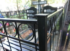 В первую очередь убираем кресты и старую лавочку. Чистим ограду от старой краски.