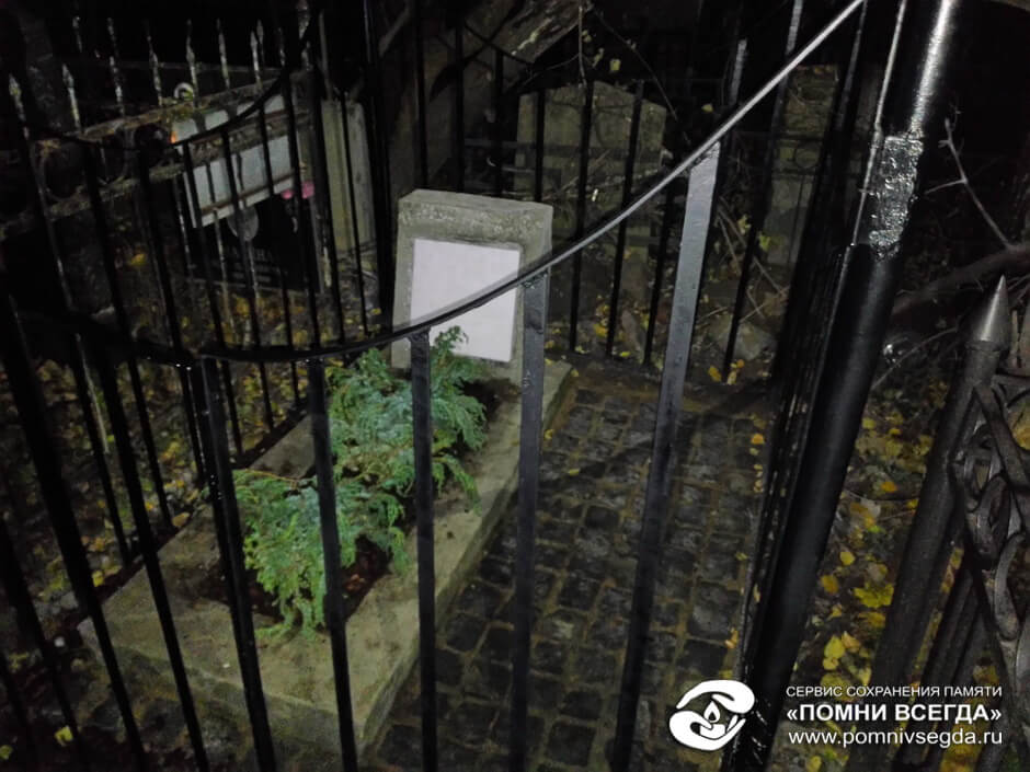 К сожалению, работы были завершены ближе к ночи и мы не смогли оказаться на этой могиле днем, поэтому только такие фото. Ограда окрашена хорошо, цветник обустроен, надгробие очищено, пол из брусчатки уложен. Уход в дальнейшем требуется минимальный.