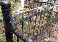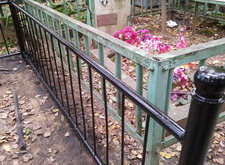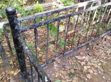 В первую очередь займемся оградой. Обожжём всю краску на ограде.