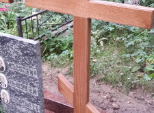 Мы восстанавливаем могилы исходя из любого исходного состояния. Так было и в этот раз. Мы изготовили и установили гранитный цоколь из красного гранита, клиент просил избегать черного цвета. Установили дубовые кресты и восстановили положение памятника, который был на могиле изначально. Посадили два можжевельника и оставили зону для будущих посадок цветов.