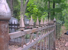 В первую очередь мы зачистили ограду. Хотя ограда и не большая по размеру, мы потратили на эту процедура два дня.