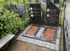 Мы выставили ровно памятники, для жёсткости обложили их брусчаткой, которую, в свою очередь, укрепили по периметру металлической полосой. Конструкция надёжно зацементирована, так что памятники уже никуда не отклонятся. Также на территории участка мы удалили всю сорную траву и засыпали корой цветники, клиент работой остался доволен.