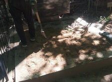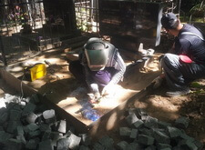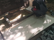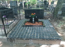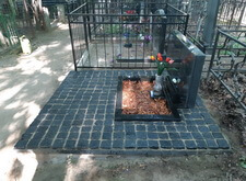 На данном месте захоронения нам предстояло провести следующие работы: поставить на место покосившийся памятник и положить на территорию участка гранитную брусчатку.
