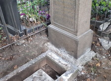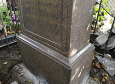 В данном заказе нам надо было отреставрировать массивный памятник, заменить откровенно старую низкую вертикальную плиту и покрасить облупившееся заграждение.