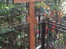 Фотоотчет далее позволит проследить за очередностью работ. Первым делом мы установили крест и восстановили целостность ограды.