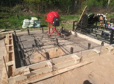 Далее началась постепенная заливка бетоном, в процессе который была вварена ещё одна арматурная сетка.
